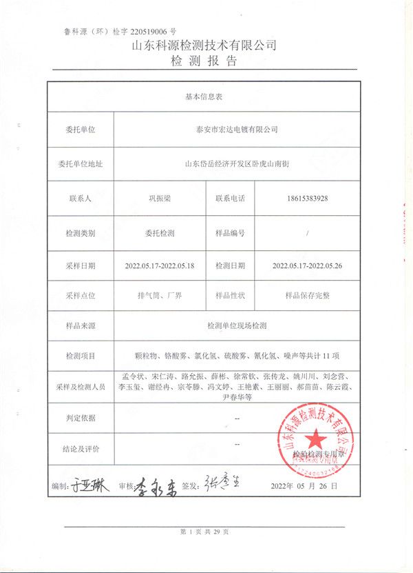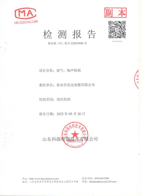 泰安市宏达电镀有限公司地下水、土壤检测报告
